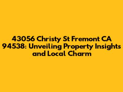Hey there, property enthusiasts! Let's dive into the details of 43056 Christy St Fremont CA 94538. We're going to explore what makes this address special, from the property itself to the vibrant neighborhood surrounding it. Think of this as your personal guide to the area, packed with insights and local tidbits. Whether you're a prospective homeowner, an investor, or just curious about the Fremont scene, you're in the right place. We'll be breaking down the property's potential, the lifestyle it offers, and why Fremont is such a desirable place to call home. Buckle up, because we're about to embark on a journey through this prime Fremont location!