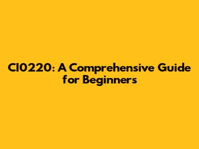 CI0220: A Comprehensive Guide For Beginners