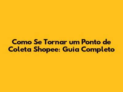 Como Ser Um Ponto De Coleta Shopee: Guia Completo