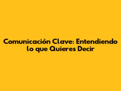 Comunicación Clave: Entendiendo Lo Que Quieres Decir
