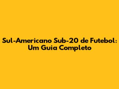 O Que é o Sul-Americano Sub-20?