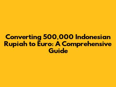 Hey everyone! Ever wondered how much 500,000 Indonesian Rupiah (IDR) is worth in Euros (EUR)? Well, you're in the right place! Converting currencies can sometimes feel like a puzzle, but don't worry, we're going to break it down and make it super easy to understand. We'll dive into the current exchange rates, explore how to do the conversion, and even give you some tips on getting the best value for your money. So, let's get started and figure out how to navigate this exciting world of currency exchange!