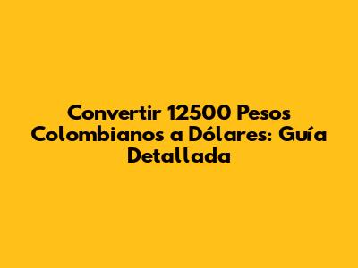 Siguiendo estos pasos, podrás convertir 12500 pesos colombianos a dólares de manera eficiente y segura.
