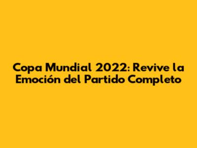 Copa Mundial 2022: Revive La Emoción Del Partido Completo