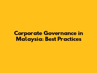 Corporate Governance In Malaysia: Best Practices