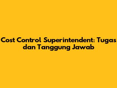 Cost Control Superintendent: Tugas Dan Tanggung Jawab