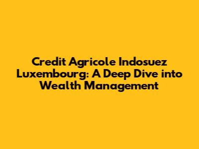 Hey guys! Let's talk about Credit Agricole Indosuez Luxembourg! If you're into wealth management, you've probably heard of them. They're a big player, and for good reason. They offer a ton of services, but what exactly do they do? How do they work, and why should you even care? We'll break it down, so you can understand what they're all about, the kinds of services they offer, and what sets them apart. This isn't just about throwing some money in an account; it's about building and preserving your wealth. Let's get started!