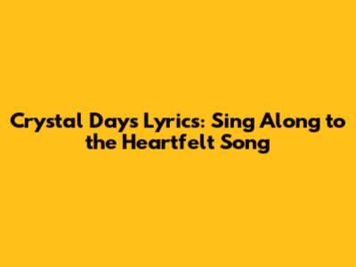 Crystal Days Lyrics: Sing Along To The Heartfelt Song