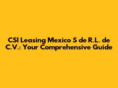 Hey guys! Ever heard of CSI Leasing Mexico S de R.L. de C.V. and wondered what they're all about? Well, you've come to the right place! This guide will dive deep into everything you need to know about this company, from its core business to its impact on the Mexican market. So, buckle up and let's get started!