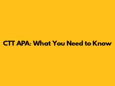 CTT APA: What You Need To Know
