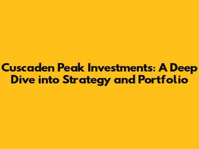 Cuscaden Peak Investments: Unveiling Investment Strategies & Portfolio