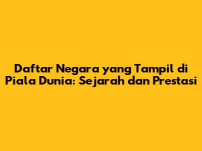Daftar Negara Yang Tampil Di Piala Dunia: Sejarah Dan Prestasi