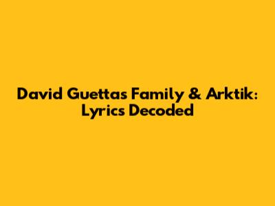 Hey music lovers! Ever found yourself completely absorbed by a song, feeling every beat, and then the lyrics hit you? That's the magic, right? Today, we're diving deep into two tracks from the legendary David Guetta: "Family" and "Arktik". We're not just going to listen; we're going to decode them. What are the lyrics really saying? What's the story behind the music? Let's get started, guys!