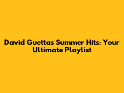 David Guetta's Summer Hits: Your Ultimate Playlist