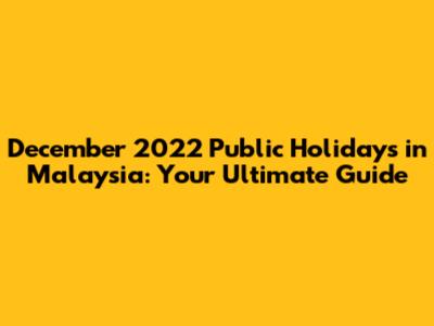 December 2022 Public Holidays In Malaysia: Your Guide