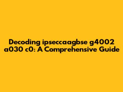 Decoding Ipseccaagbse G4002 A030 C0: A Comprehensive Guide