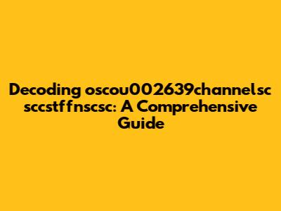 Decoding Oscou002639channelsc Sccstffnscsc: A Comprehensive Guide