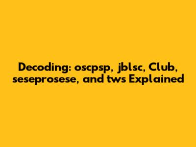 Decoding: Oscpsp, Jblsc, Club, Seseprosese, And Tws Explained