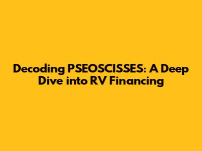Hey guys! Ever wondered about the ins and outs of financing your dream RV? Well, you're in luck! We're about to dive headfirst into the world of PSEOSCISSES (which we'll break down in a sec) and how it relates to getting your hands on that sweet, sweet recreational vehicle. This is going to be a fun journey, so buckle up, grab your favorite beverage, and let's get started. Seriously, financing an RV can seem like a daunting task, but understanding the basics and key terms can make the entire process smoother and a lot less stressful. We'll be covering everything from what PSEOSCISSES actually is, to how it affects your RV financing options, and tips and tricks to get the best deal possible. Forget those confusing financial jargon – we're keeping it real and easy to understand. So, whether you're a seasoned RVer or a newbie dreaming of hitting the open road, this is your ultimate guide to RV financing. Get ready to transform those RV dreams into reality!