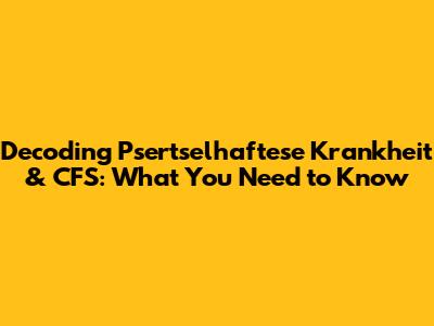 Decoding Psertselhaftese Krankheit & CFS: What You Need To Know