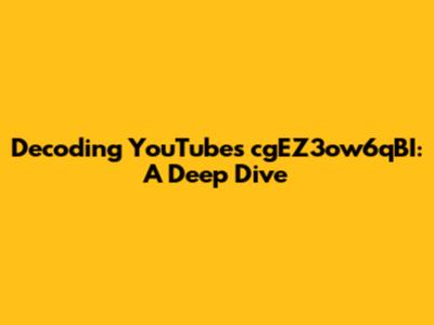 Decoding YouTube's CgEZ3ow6qBI: A Deep Dive