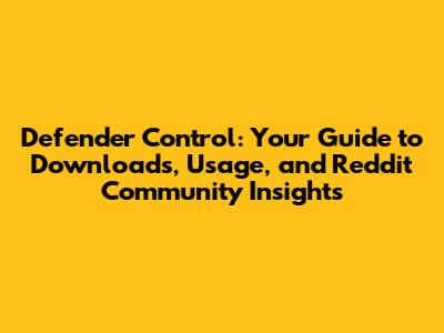 Defender Control: Download, Guide & Reddit Insights