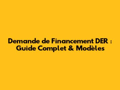 Demande De Financement DER : Guide Complet & Modèles