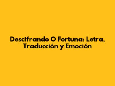 Aquí tienes una traducción al español de "O Fortuna" para que puedas comprender mejor su significado: