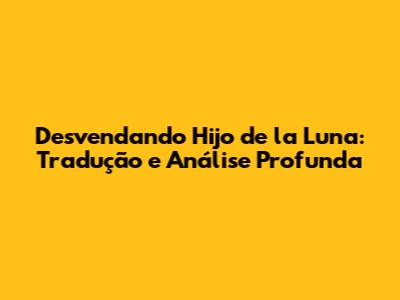 Desvendando 'Hijo De La Luna': Tradução E Análise