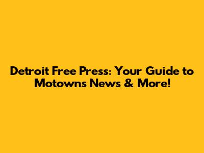 Detroit Free Press: Your Guide To Motown's News & More!