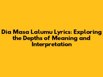 Unpacking the Lyrics: A Closer Look at "Dia Masa Lalumu"