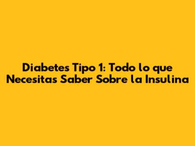 Diabetes Tipo 1: Todo Sobre La Insulina