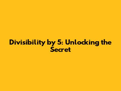 Hey everyone! Today, we're diving into a super handy math trick: figuring out if a number is divisible by 5. This is one of those rules that seems simple, but it's incredibly useful, whether you're working on homework, doing quick mental calculations, or just trying to impress your friends. So, let's get down to it and make sure you guys know how to check it easily and quickly.