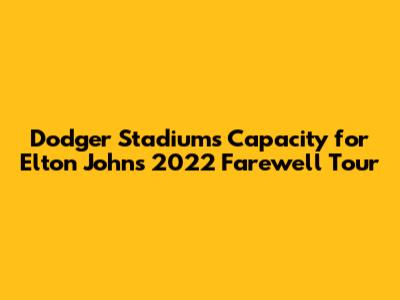Hey everyone, let's dive into something pretty awesome: Dodger Stadium's capacity for Elton John's epic 2022 Farewell Yellow Brick Road Tour concert! If you were lucky enough to snag tickets, or if you're just curious about the sheer scale of the event, you're in the right place. We're going to break down the numbers, talk about the atmosphere, and give you a glimpse into what made this concert such a monumental moment in music history. So, grab a seat, get comfy, and let's unravel the story of Elton John's farewell at one of America's most iconic venues.