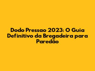 Dodo Pressao 2023: O Guia Definitivo Da Bregadeira Para Paredão