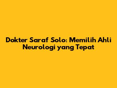 Memilih dokter saraf di Solo yang tepat adalah keputusan penting yang dapat berdampak signifikan pada kesehatan dan kualitas hidup Anda. Dengan mempertimbangkan faktor-faktor seperti kualifikasi, pengalaman, reputasi, fasilitas, dan pendekatan pasien, Anda dapat menemukan ahli neurologi yang paling sesuai dengan kebutuhan Anda. Jangan ragu untuk mencari informasi, meminta rekomendasi, dan membuat janji konsultasi untuk memastikan Anda mendapatkan perawatan terbaik.
