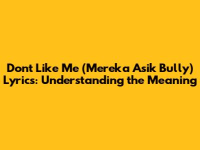 Don't Like Me (Mereka Asik Bully) Lyrics: Understanding The Meaning