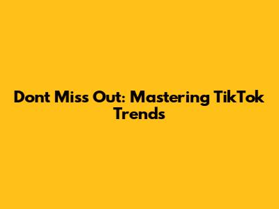Don't Miss Out: Mastering TikTok Trends