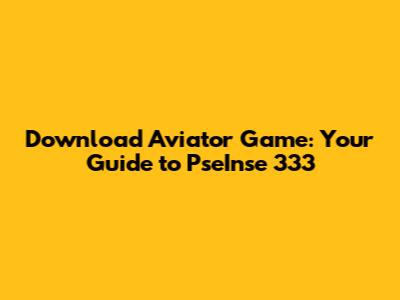 Download Aviator Game: Your Guide To PseInse 333