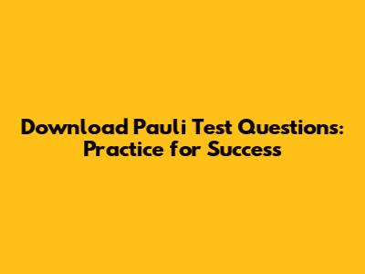 Download Pauli Test Questions: Practice For Success