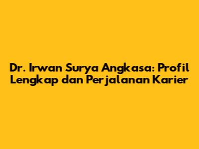 Dr. Irwan Surya Angkasa: Profil Lengkap Dan Perjalanan Karier