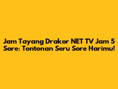 Drakor NET TV Jam 5 Sore: Jadwal Hari Ini
