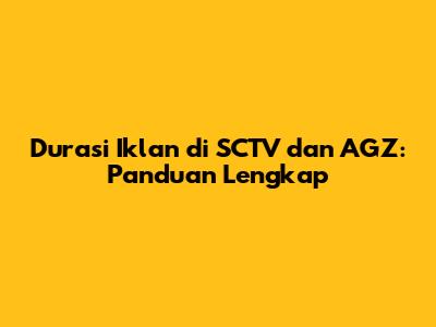 AGZ (seharusnya merujuk pada stasiun televisi atau platform tertentu, perlu klarifikasi lebih lanjut) juga menawarkan peluang iklan yang menarik bagi pengiklan. Informasi mengenai durasi iklan di AGZ mungkin berbeda dengan SCTV, tergantung pada kebijakan stasiun, jenis program, dan penawaran khusus. Secara umum, durasi iklan di AGZ juga bervariasi, memungkinkan pengiklan untuk memilih durasi yang sesuai dengan kebutuhan mereka. Namun, karena informasi spesifik mengenai AGZ mungkin terbatas, pengiklan disarankan untuk menghubungi tim pemasaran atau perwakilan AGZ untuk mendapatkan detail yang akurat. Beberapa poin penting yang perlu dipertimbangkan terkait durasi iklan di AGZ: