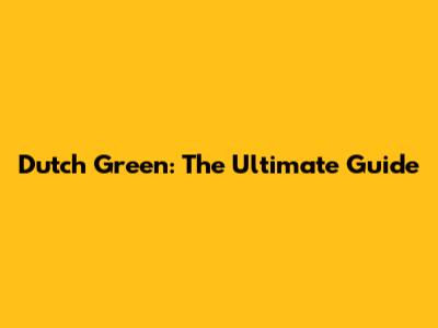 Dutch Green: The Ultimate Guide