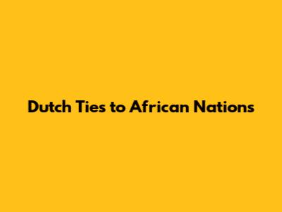 Dutch Ties To African Nations