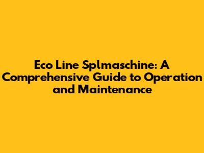 Eco Line Splmaschine: Guide To Optimal Performance