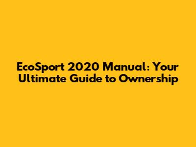 EcoSport 2020 Manual: Your Guide To Mastering Your Ride