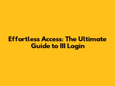 Effortless Access: The Ultimate Guide To III Login