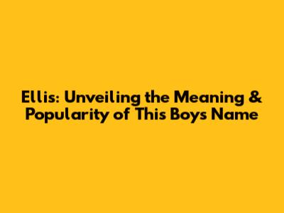 Ellis: Unveiling The Meaning & Popularity Of This Boy's Name
