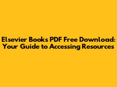 Elsevier Books PDF: Find Free Downloads & Resources